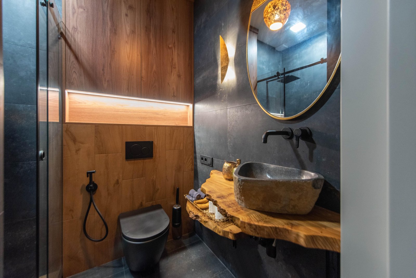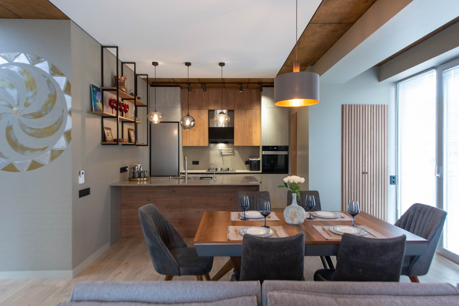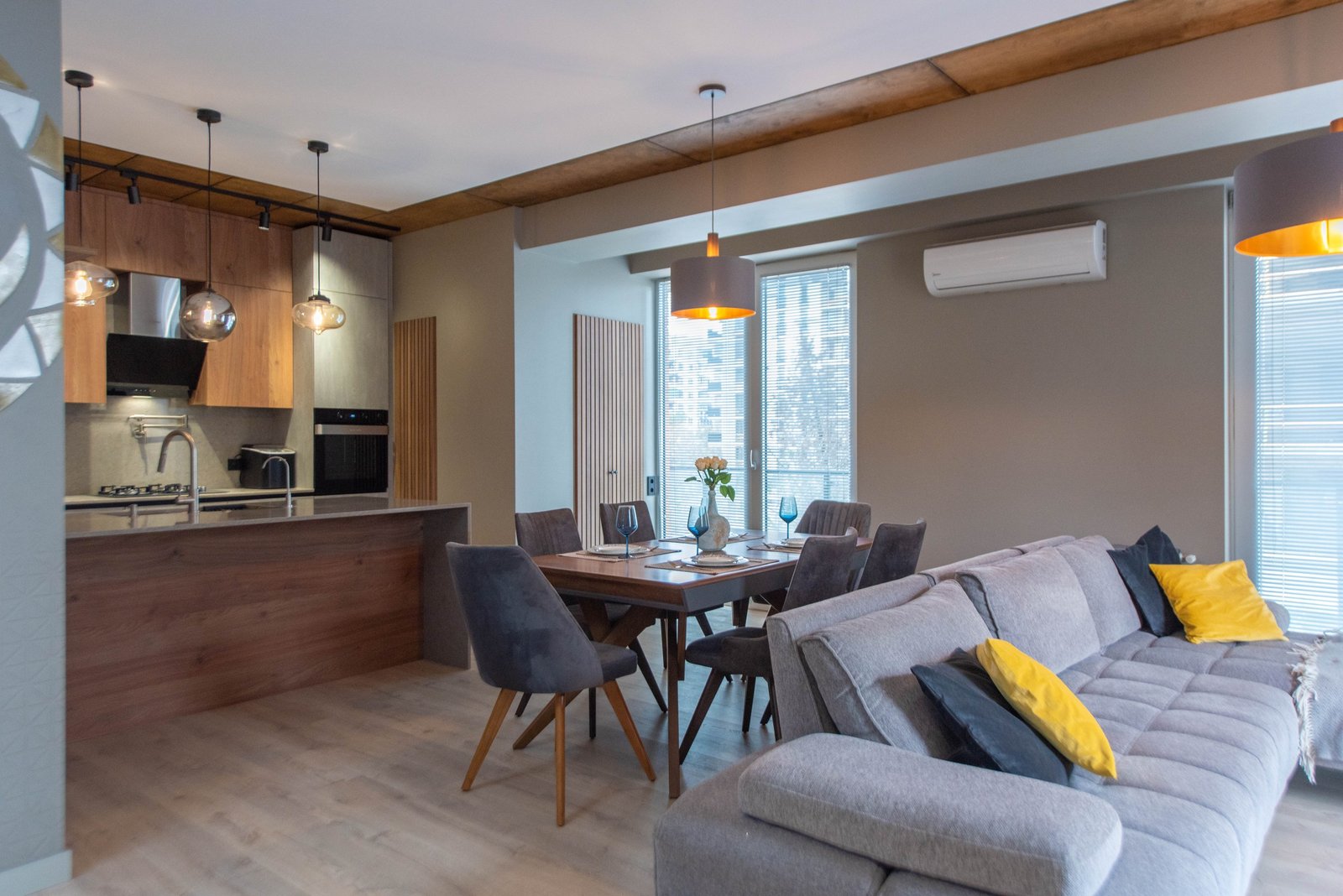 A beautifully renovated apartment is for sale on Gorgasali Street, near Fresco Market. The property has been finished to the highest standards, using premium-quality materials throughout. The design reflects individual elements, with a strong emphasis on natural materials like wood and stone, creating a warm and inviting atmosphere.