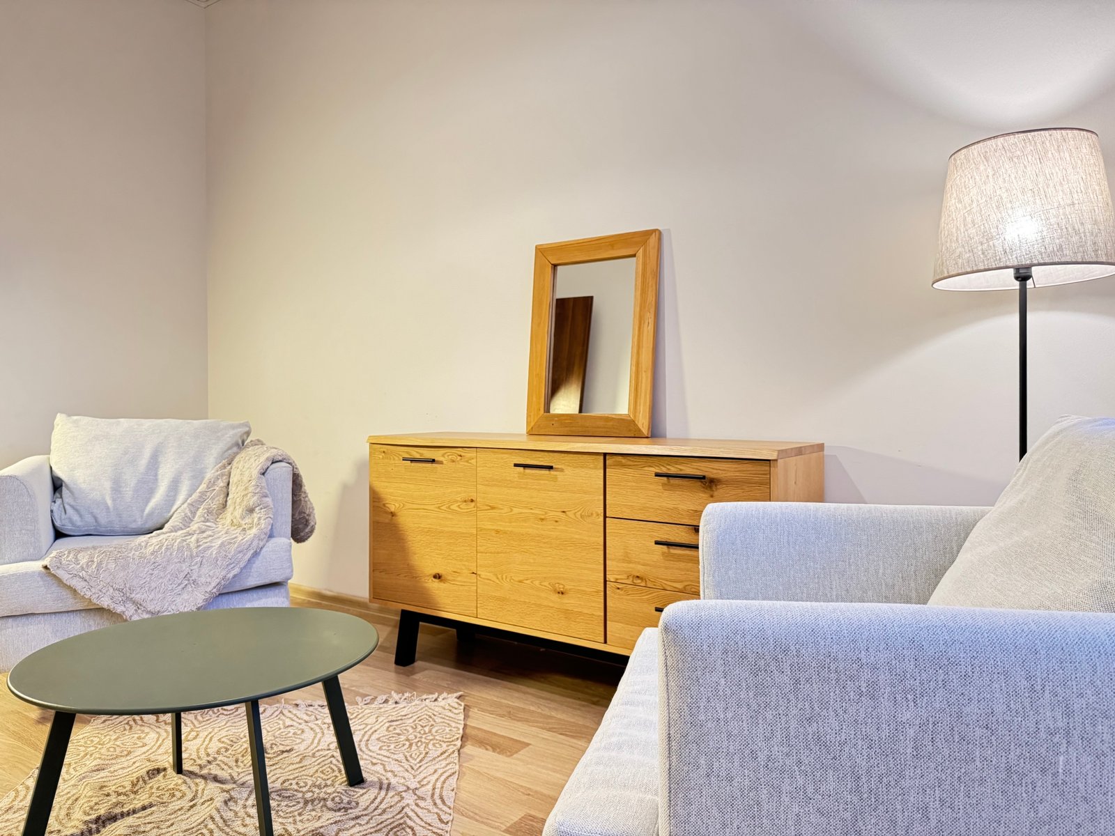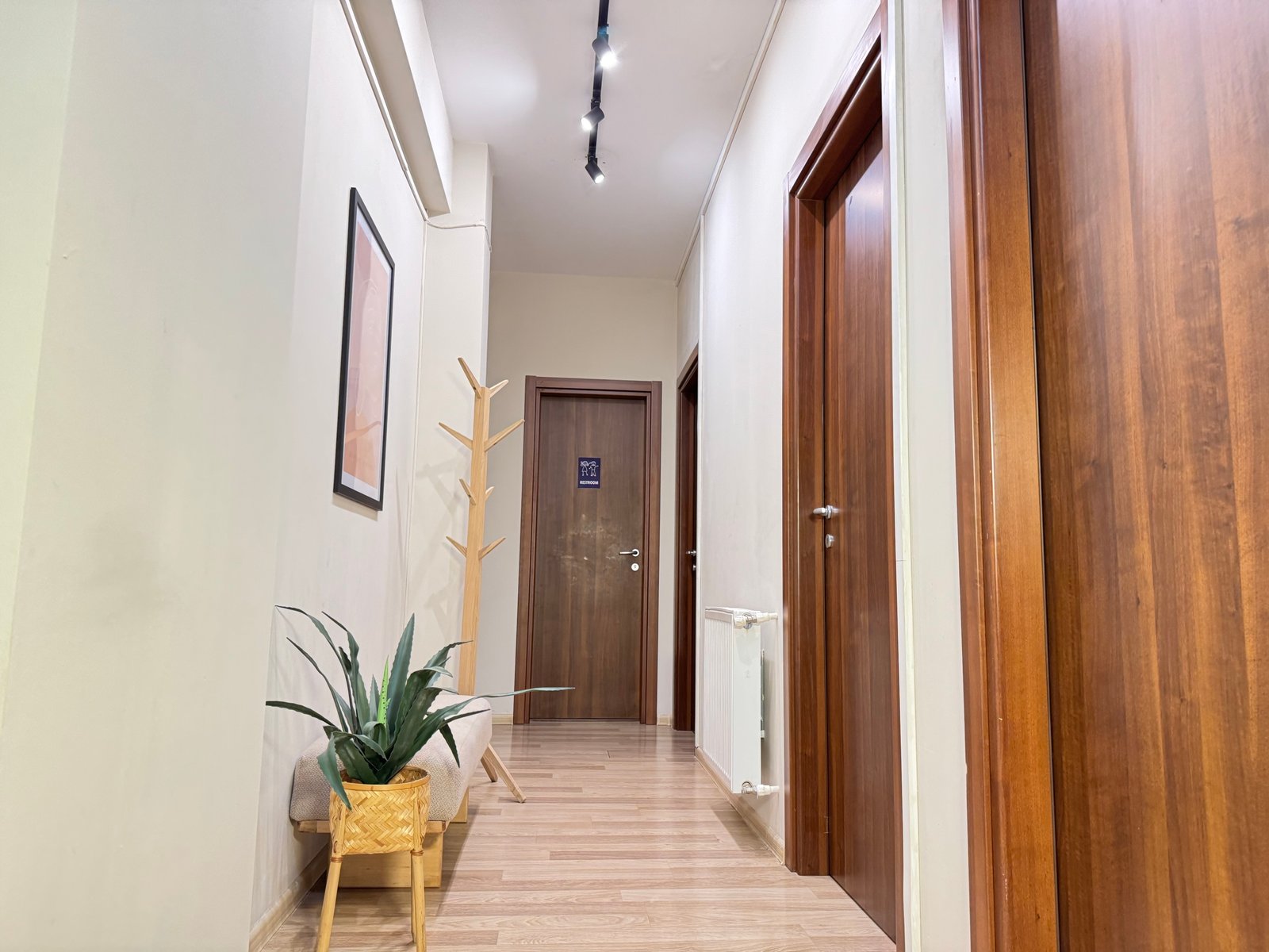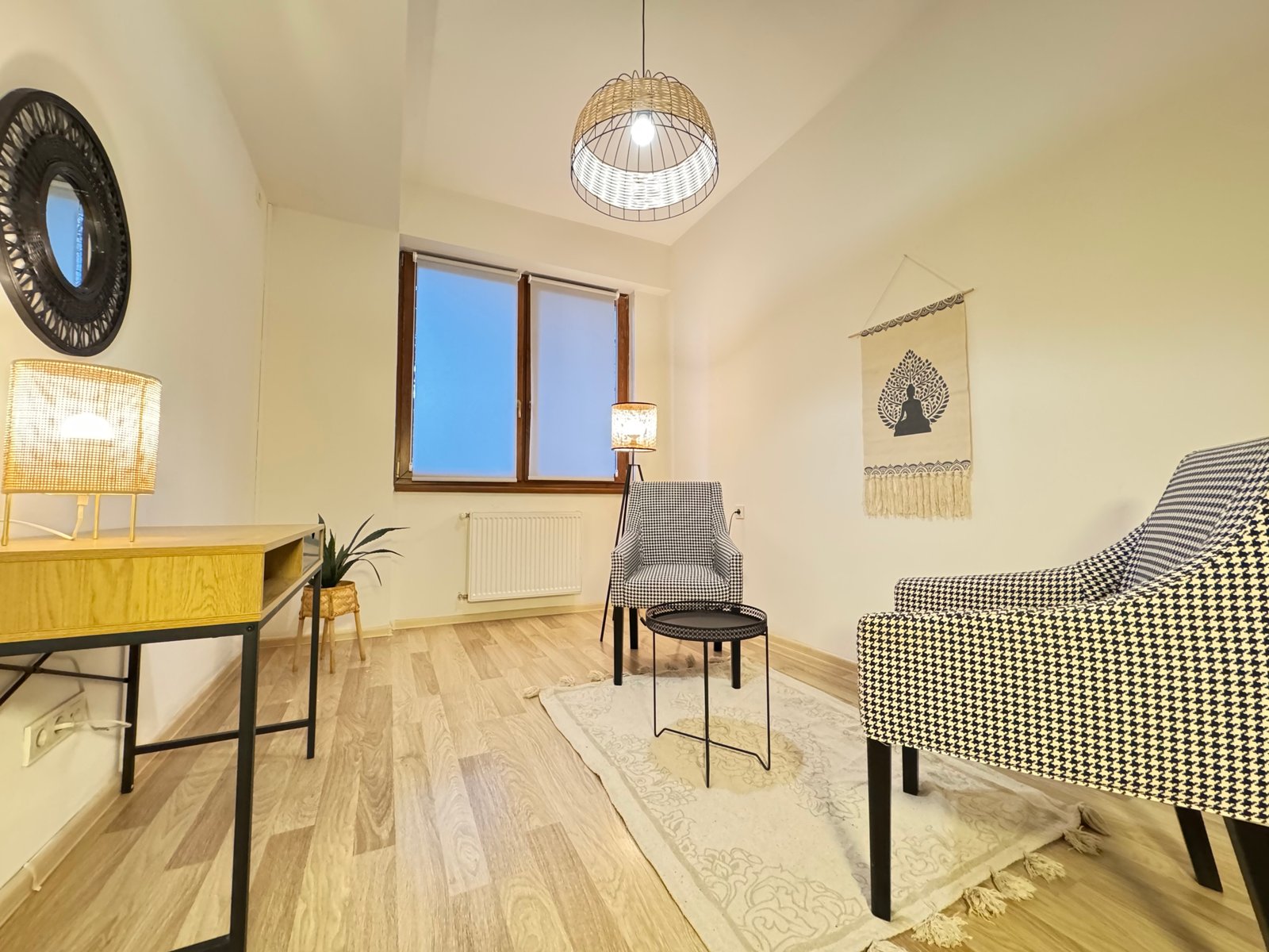 For sale a sophisticated 4-room apartment in the prestigious M2 complex, located on the 1st floor (11). Spanning 88.54 square meters, this exquisite residence features a studio-style living area, three spacious bedrooms, and a one bathroom. Additionally, the space is versatile and can be adapted for office use, offering three independent offices room and one expansive workspace.